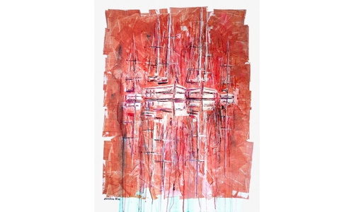 ESCALE A HYERES 116X89cm, acrylique au couteau