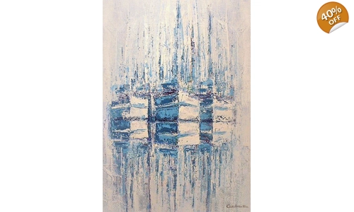 ESCALE A LA MADRAGUE 81X60cm, huile au couteau