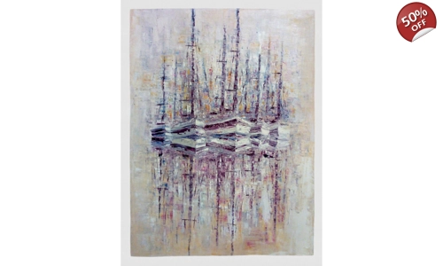 L'originalité de la toile réside dans la signature double sur une coque de bateau et son reflet, ce qui permet la lecture de la toile dans les deux sens.
