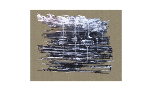 ESCALE AUX EMBIEZ 65X81cm, acrylique au couteau