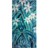 Iris blancs aux feuilles et tiges étroitement imbriquées dans une composition naturellement cubique.