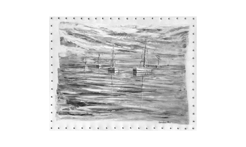 Peinture au Couteau, acryliques extra fines, peintures métallisées + pigments iridescents. Toile pur lin sur châssis à clés Qualité Supérieure, vernis de finition mat. Clous de tapissier sur le pourtour de la toile en façade. Création originale signée en bas à droite.