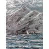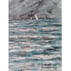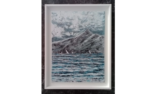 Acrylique au couteau sur châssis entoilé en coton. Monochrome gris avec glacis bleu pailleté. Œuvre originale signée et vernie - 2024. Toile encadrée avec caisse américaine blanc mat. Option sans cadre : 490 €
